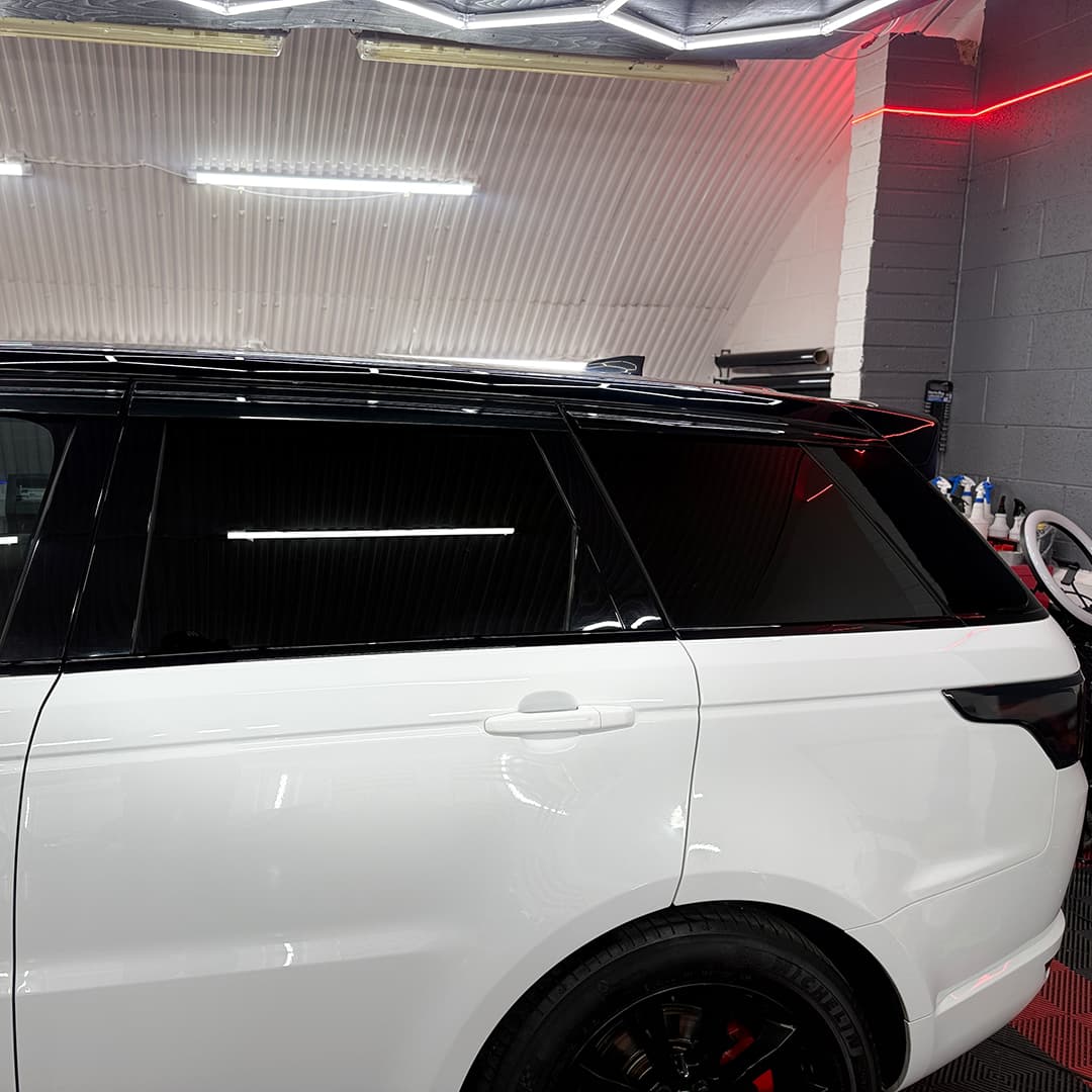 Our solution: a comprehensive Range Rover window tints Ilford and ceramic coating package with custom caliper work.