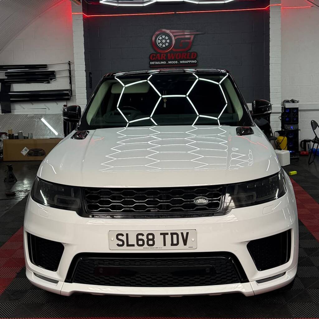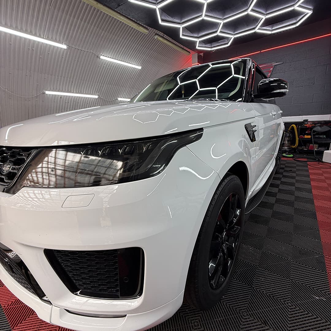 Experience this comprehensive Range Rover ceramic coating London and customization project at OG CAR WORLD’s Ilford studio. This triple-enhancement package transformed this white luxury SUV with permanent protection, premium window tints, and sporty red caliper upgrades for the ultimate London statement.